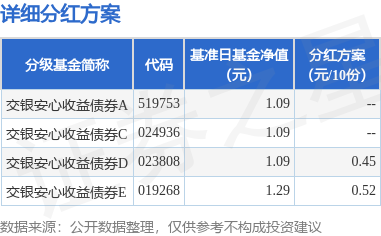 本站消息,9月23日发布《交银施罗德基金管理有限公司关于交银施罗德安心收益债券型证券投资基金分红公告》。本次分红为2025年度的第2次分红。公告显示日天金策略,本次分红的收益分配基准日为9月9日,详细分红方案如下: